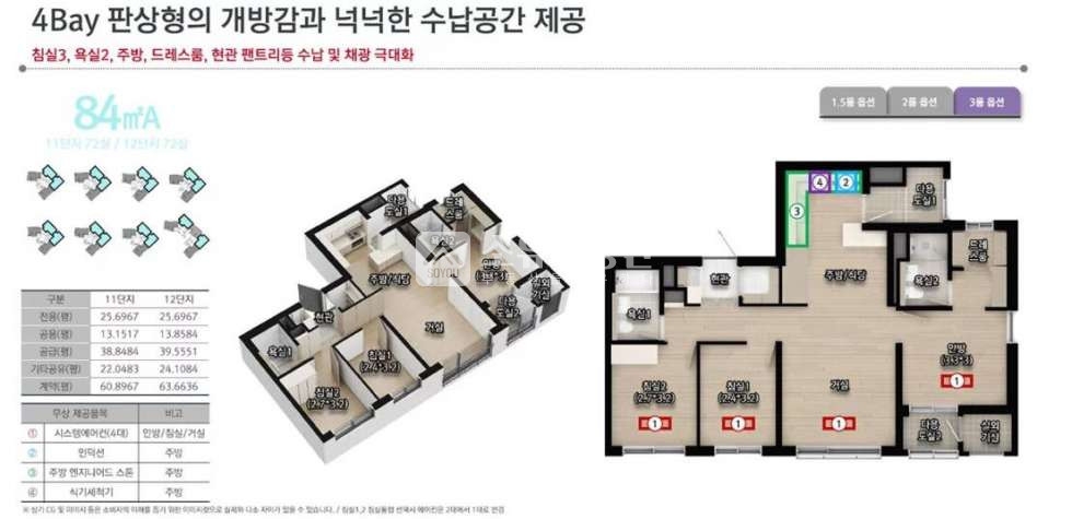 🐳 모든 호실이 남동, 남서향으로 이루어지고 4베이 구조로
